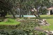 Im naturbelassenen Garten gibt es ausserdem einen Wasserfall, den viele Gäste und Patienten als Meditationsbrunnen bezeichnen, eine ayurvedische Kräutersauna, eine steinerne Ölwanne für Hautbehandlungen, eine erhöhte Yoga- und Meditations-Plattform und einen Süsswasserpool. Im zweiten Teil der Anlage befindet sich die Apotheke mit der Ölküche (in der sowohl die Öle für die Anwendungen als auch die Medizin selbst hergestellt werden), ein Schlafraum für die Ärzte mit Nachtdienst und einer für den Nachtmanager, die Wasseraufbereitungsanlage, die Räumlichkeiten für die Mitarbeiter (derzeit sind 120 Mitarbeiter in der Lotus Villa beschäftigt), eine eigene Wäscherei (die alles "vom Öle befreien" kann), das Büro, die Werkstatt und, neben der Vogelvoliere, der Lotus-Brunnen.